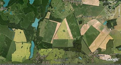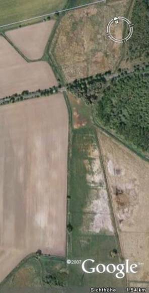 Mit google-earth über dem Upstall Schönerlinde, einem der bedeutendsten Fundplätze im Bereich der Akenberge - sehr einfach lassen sich hier die Geoglyfen finden.