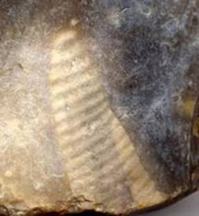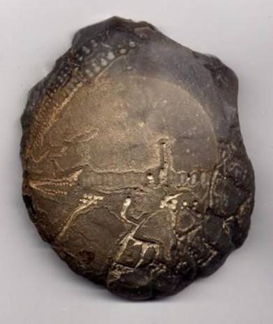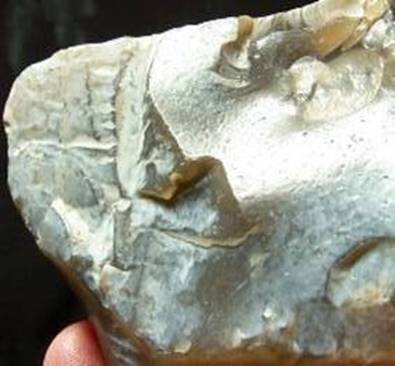 Hier sind Griffel und von der linken Hand Zeigefinger und Daumen dargestellt - mit denen diese Steine unter anderem gestaltet wurden