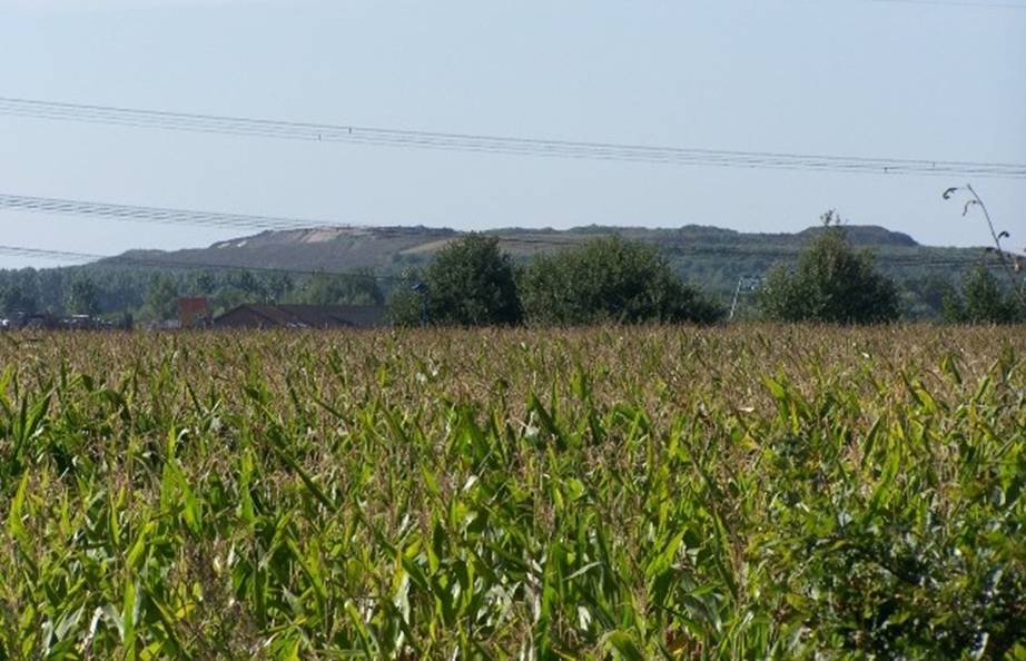 Ob der helle Streifen auf dem Acker nur Zufall ist oder nicht, er deutet einen schrägen Ausleger eines Turmes an und deutet auf die Form eines anderen schrägen Turmhelmes, der sich als Teil eines besonders schönen Landschaftsbildes einer alten Architekturform entpuppt.