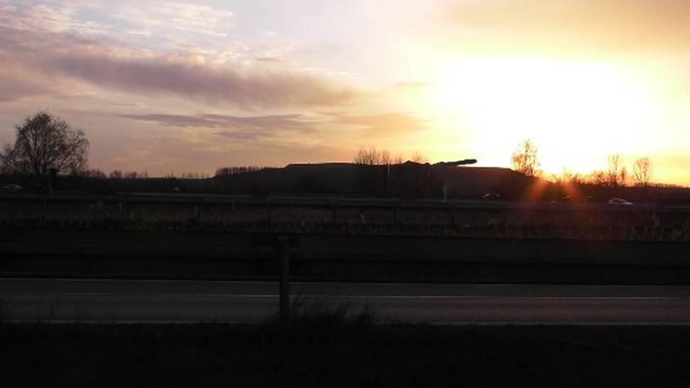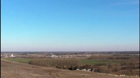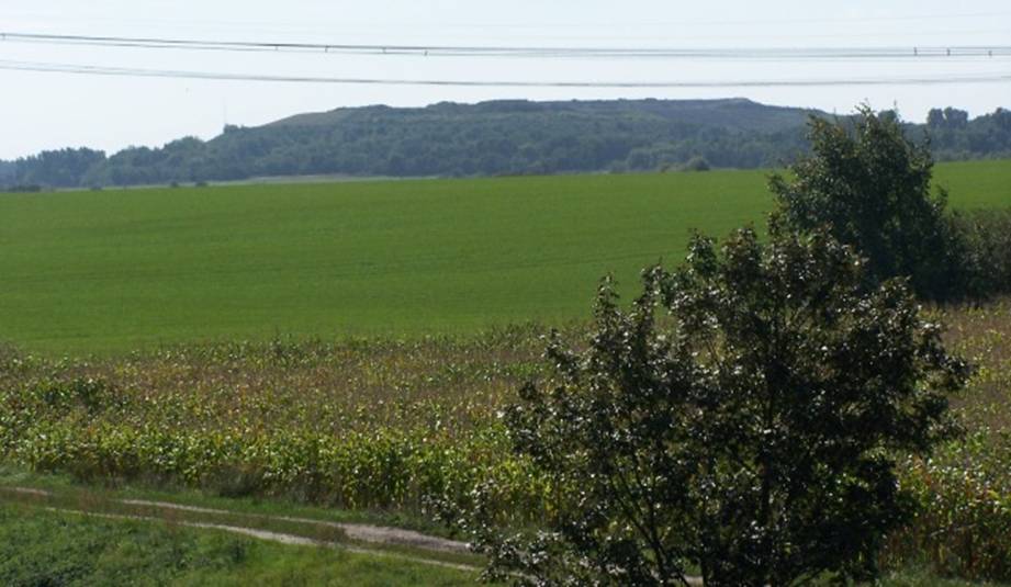 Wenn sie hinter diesen Waldstreifen gehen und die Straße überqueren, können sie in einiger Entfernung die Akenberge sehen, genauso wie die Zeichnung auf dem Stein das zeigt.
