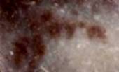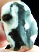 Hier noch einmal die gesamte Gestaltung dieser Steinfläche (rechts in der Orgiginalgröße). Auch für den ungeübten Betrachter vorkubischer Bild- und Zeichenkompositionen, dürfte nach kurzer Betrachtung das nach rechts gewendete schwarze Gesicht mit dem deutlichen rechten Auge, der zeichnerisch angedeuteten Nase und dem herabgezogenen Mundwinkel zu erkennen sein. Wer denkt dabei nicht an einen Schornsteinfeger, der auf einem Brandplatz sicher seine Aufgaben hatte und noch heute einen geheimnisumwitterten Hinweis auf zerstörte Traditionen eines schwarzen Mannes und seinen möglichen Aufgaben zum Ausdruck bringt. Dafür erfreut sich das Schwarzgeld in unseren Tagen wachsender Beliebtheit – und dazu noch im allerdings nicht vorkubischen Liechtenstein.