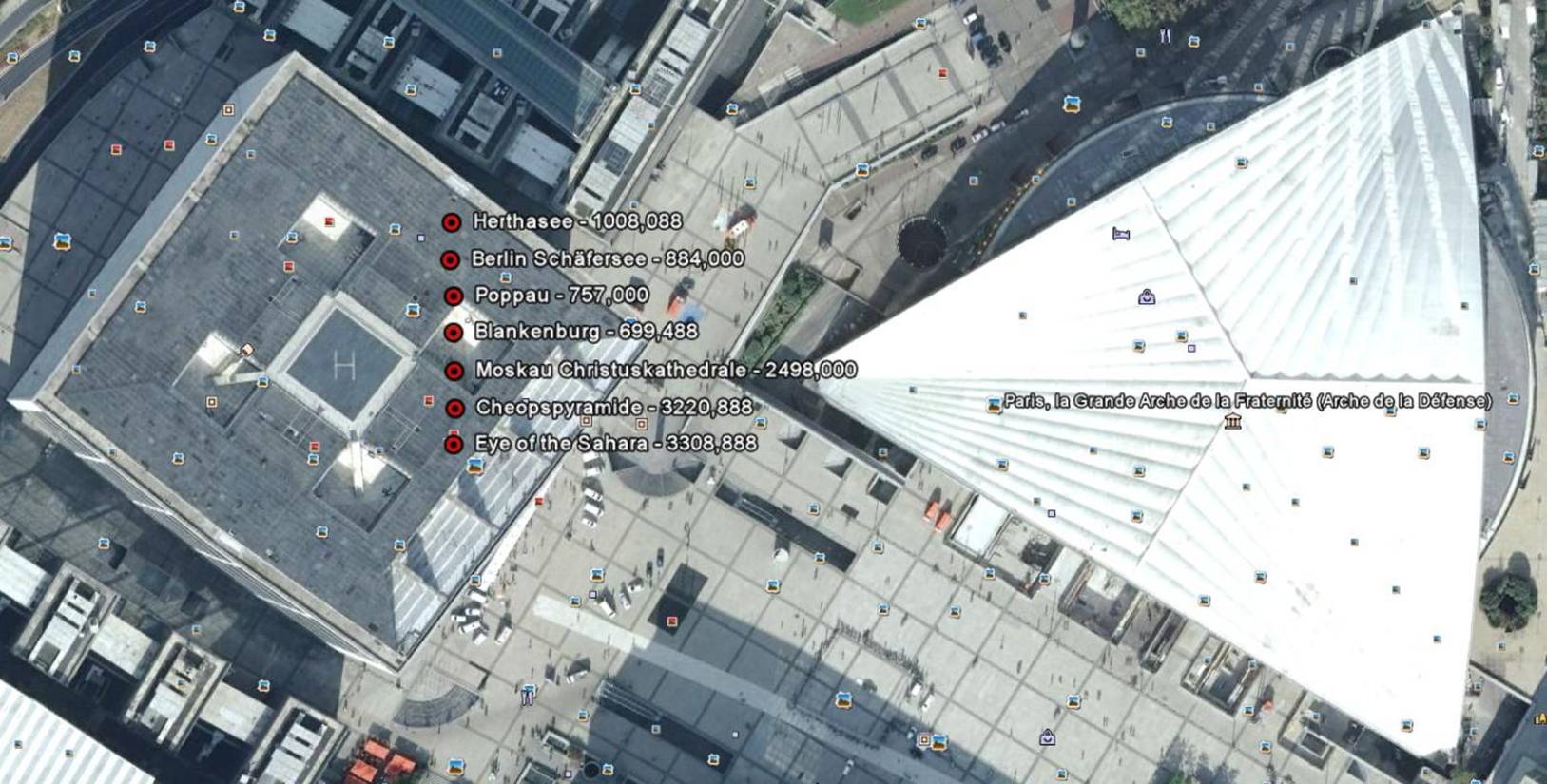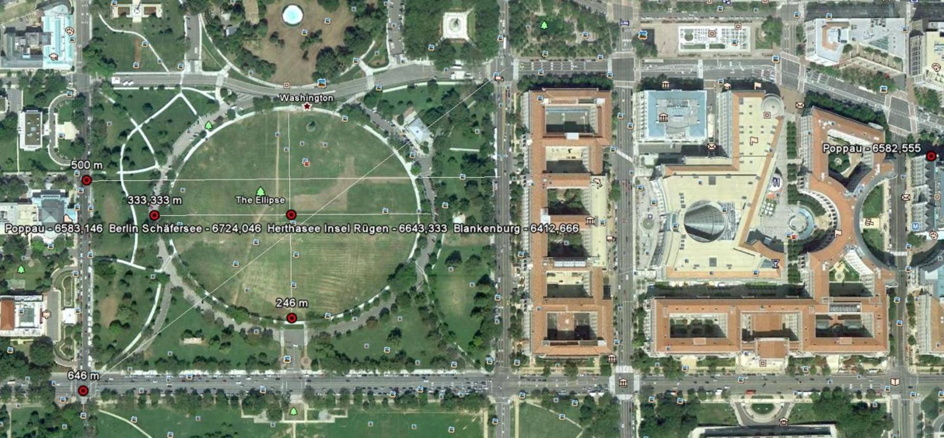 Poppau - 6583,146 km Berlin Schäfersee - 6724,046 km Herthasee Insel Rügen - 6643,333 km Mittelpunkt Blankenburgsystem - 6412,666 km