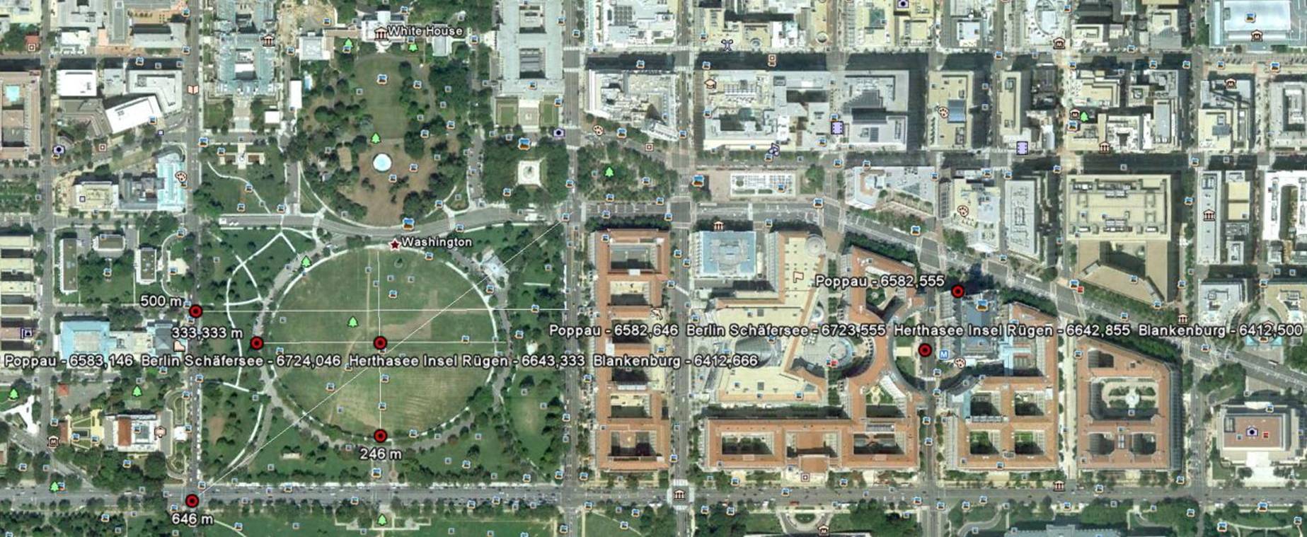 Poppau - 6582,646 Berlin Schäfersee - 6723,555 Herthasee Insel Rügen - 6642,855 Mittelpunkt Blankenburgsystem - 6412,500