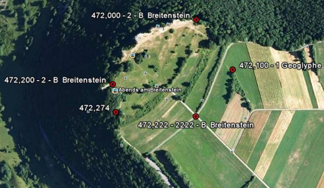 Breitstein mit 1 – Glyphe bei 472,100 km |