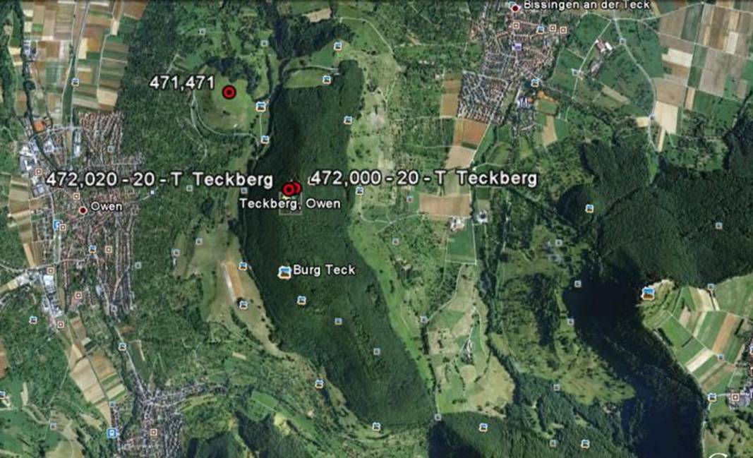 Teckberg mit der 2 im Kilometerwert, 20 – T |