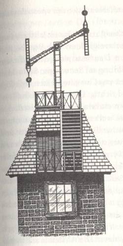 Semaphor Signalturm bei Bosch Zerstörung eines Turms bei Bosch und gleichzeitiger Neubau durch einen Bauarbeiter in geistlicher Tracht. Das T in seiner technischen Anwendung fehlt nicht, auch die Signalmasten in typischer Schrägstellung sind vorhanden und haben sich bis in unserer Zeit erhalten (Fahnenmasten mit kugelähnlichem Abschluß).