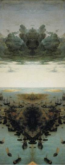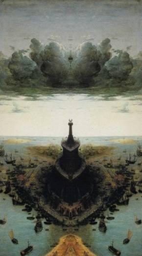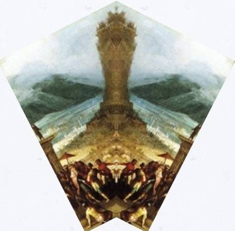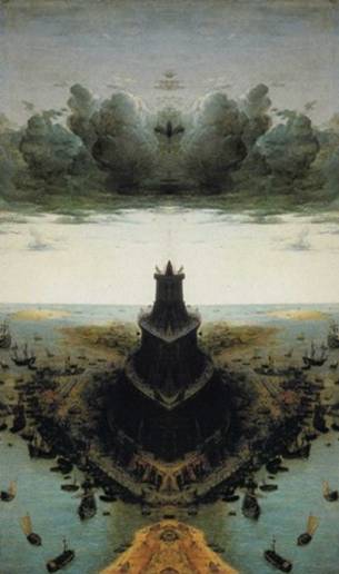 Im Turmbau zu Babel hat Bruegel es anamorph geschafft, einen äußerst komplexen Bauvorgang bildlich zu realisieren. In äußerst einprägsamen Teilbilder lässt er den Turm Etage für Etage auf einem leeren Bauplatz entstehen. Das ganze ergibt von rechts oder links gespiegelt zwei gänzlich unterschiedliche Bildfolgen. Dabei weist er auf unterschiedliche Turmmodelle hin und auch die Bautechnik ist dargestellt.