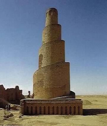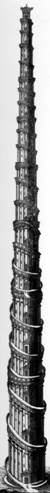Spiralebauweise im Orient, die den Materialtransport während des Baugeschehens erheblich erleichtert und sicher auch die Unfallgefahr senkt. Wie das Bild rechts zeigt, war dieses Turmmodell auch in Deutschland bekannt